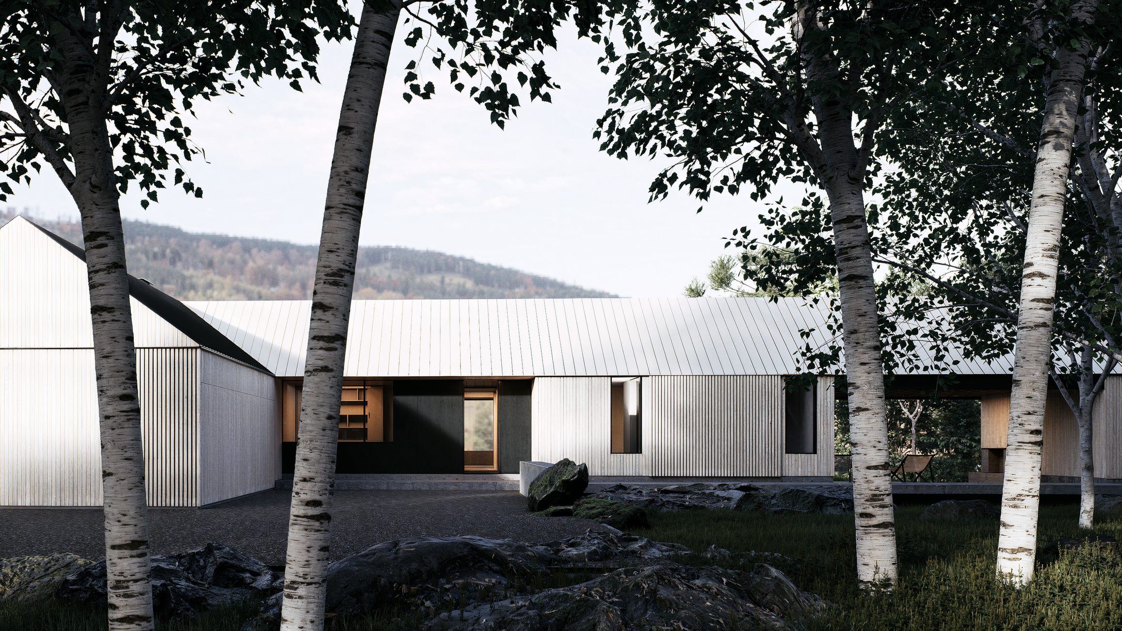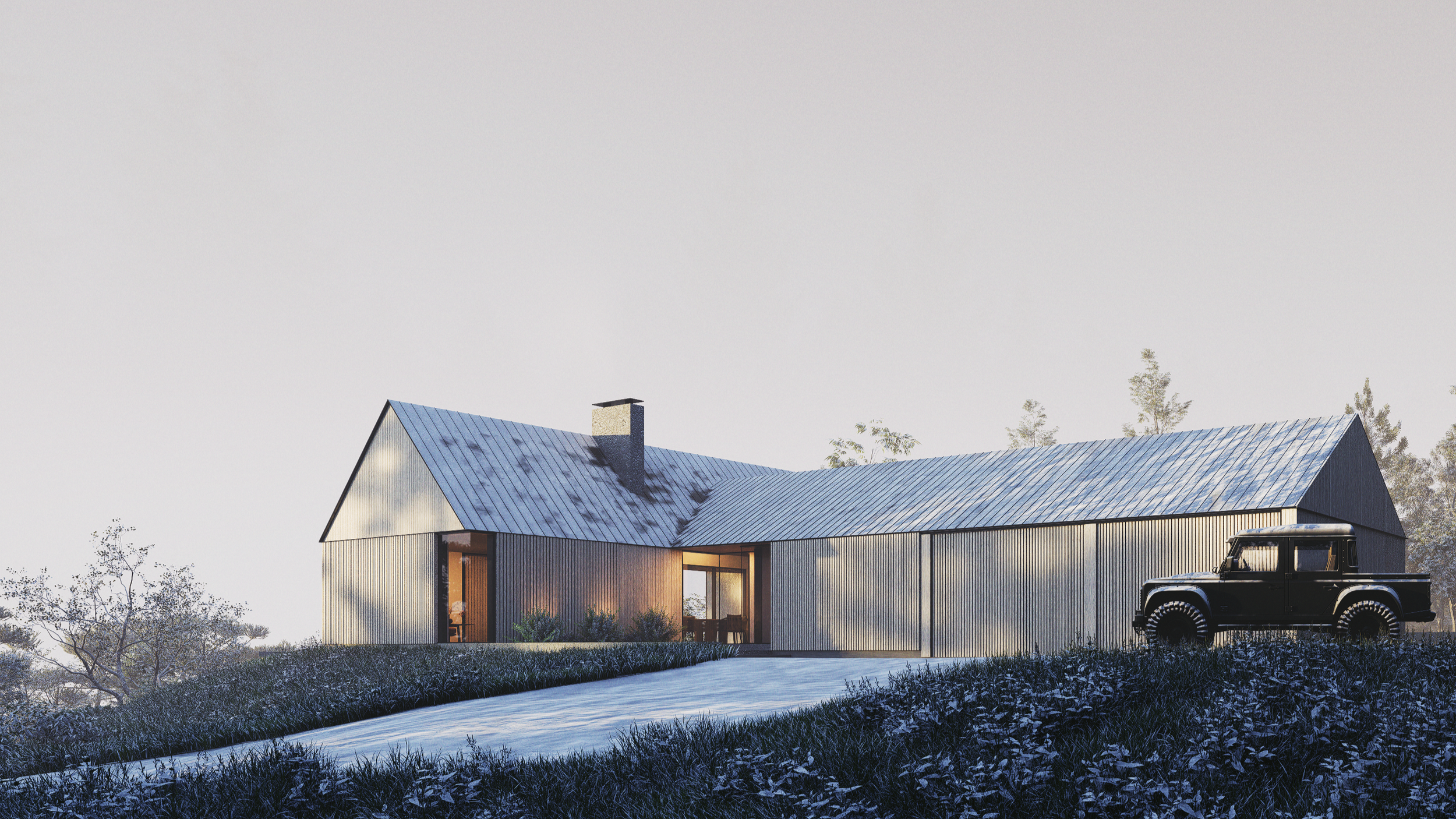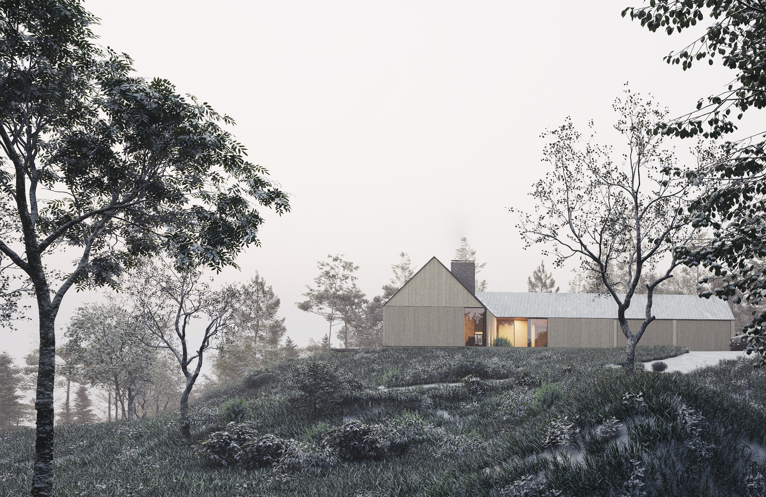 The home’s understated, barn-structure profile thoughtfully nods to the region’s traditional residential vernacular. This intentional modesty ensures the structure feels harmoniously scaled and contextually integrated within the natural landscape.