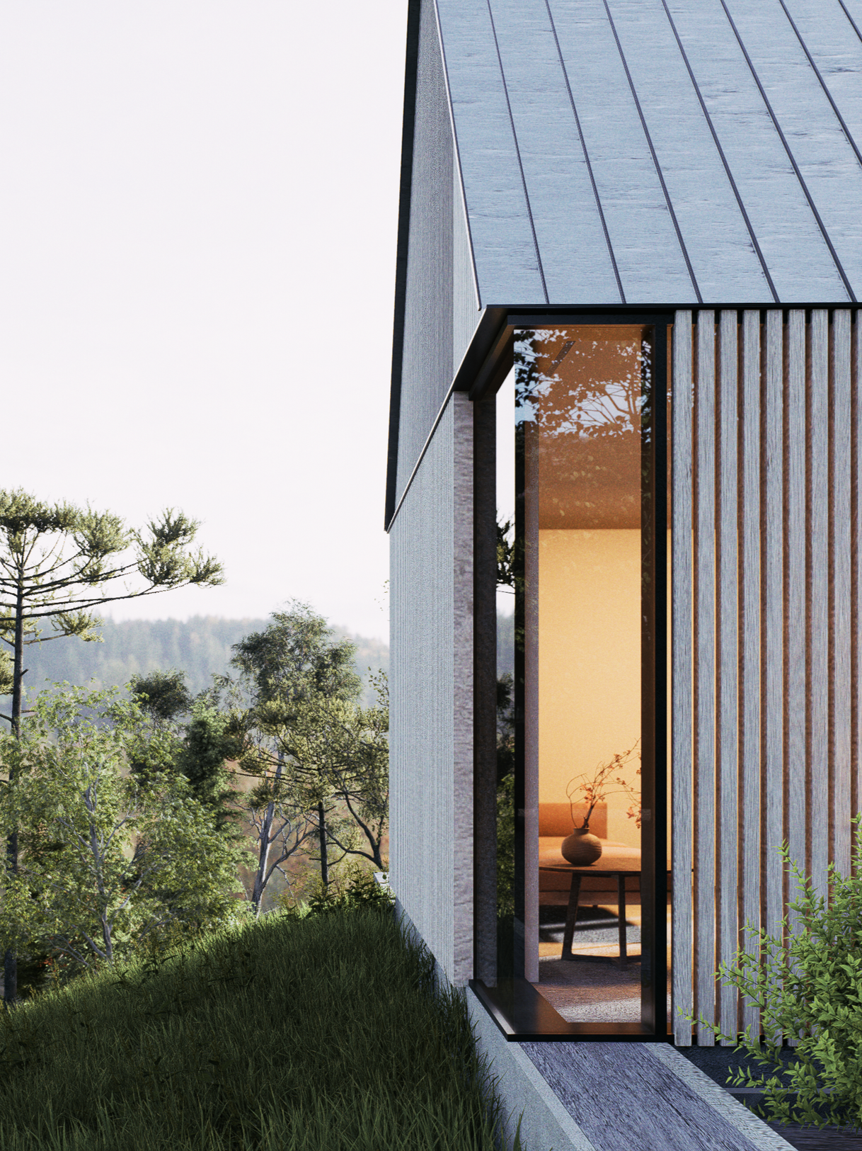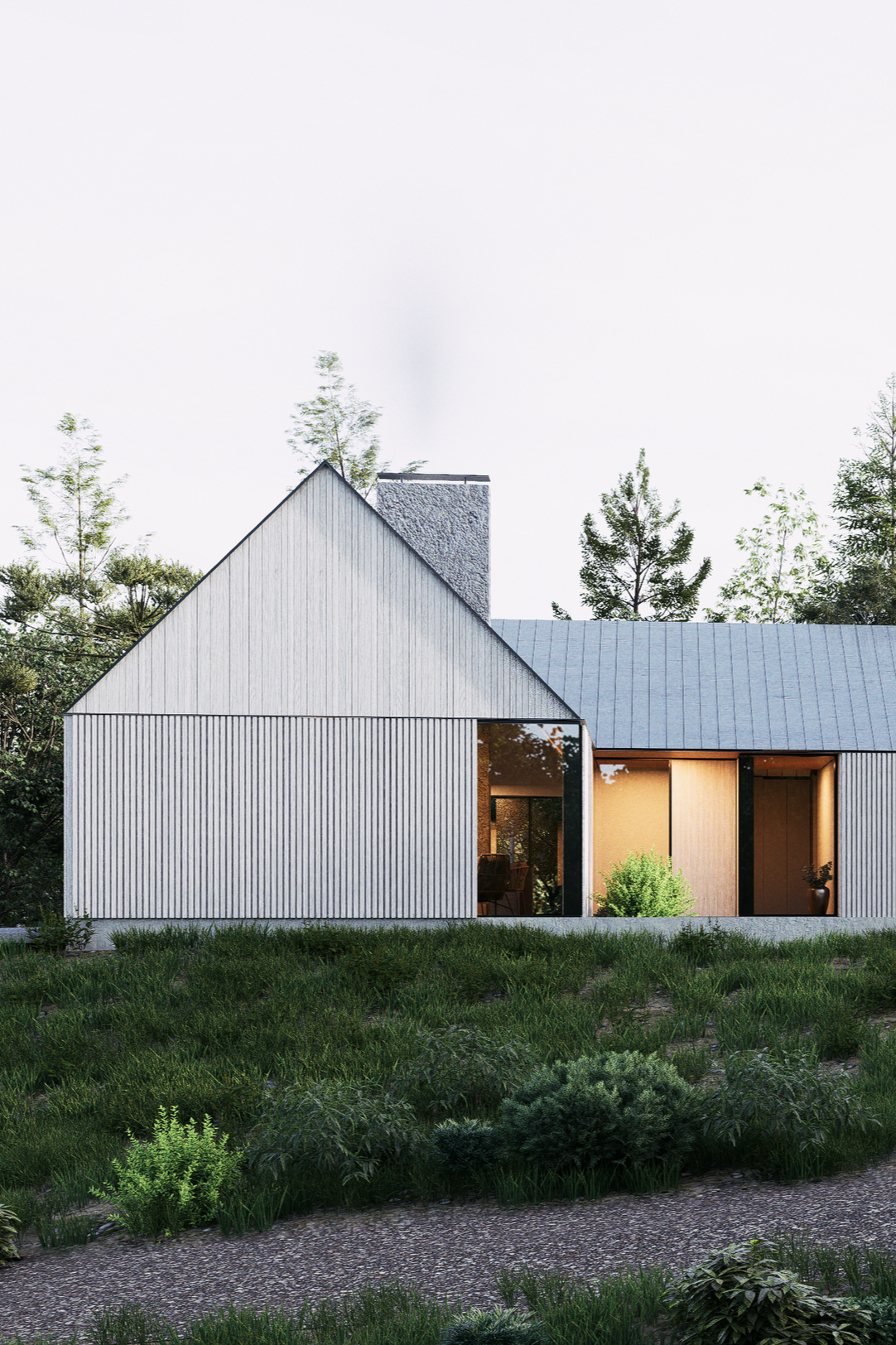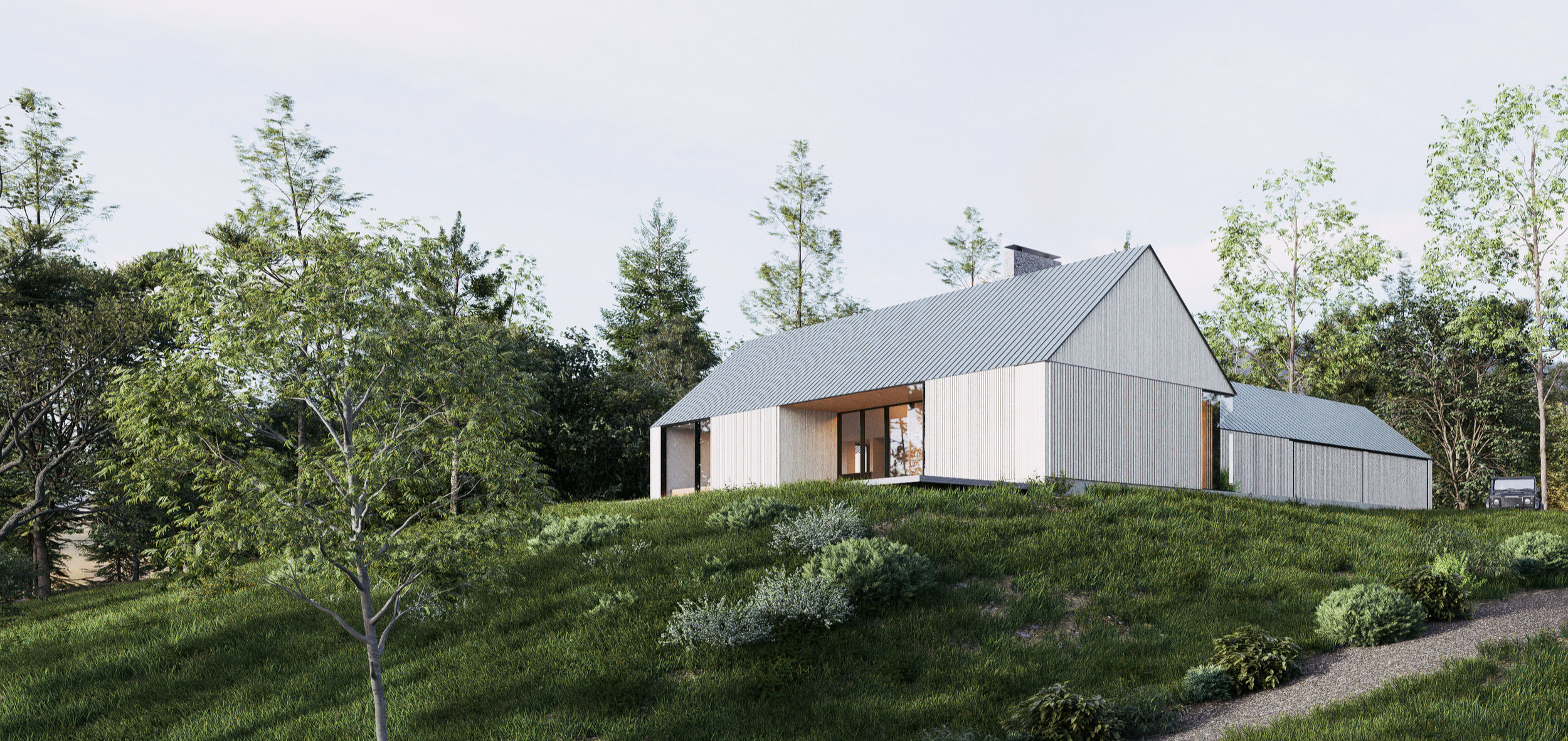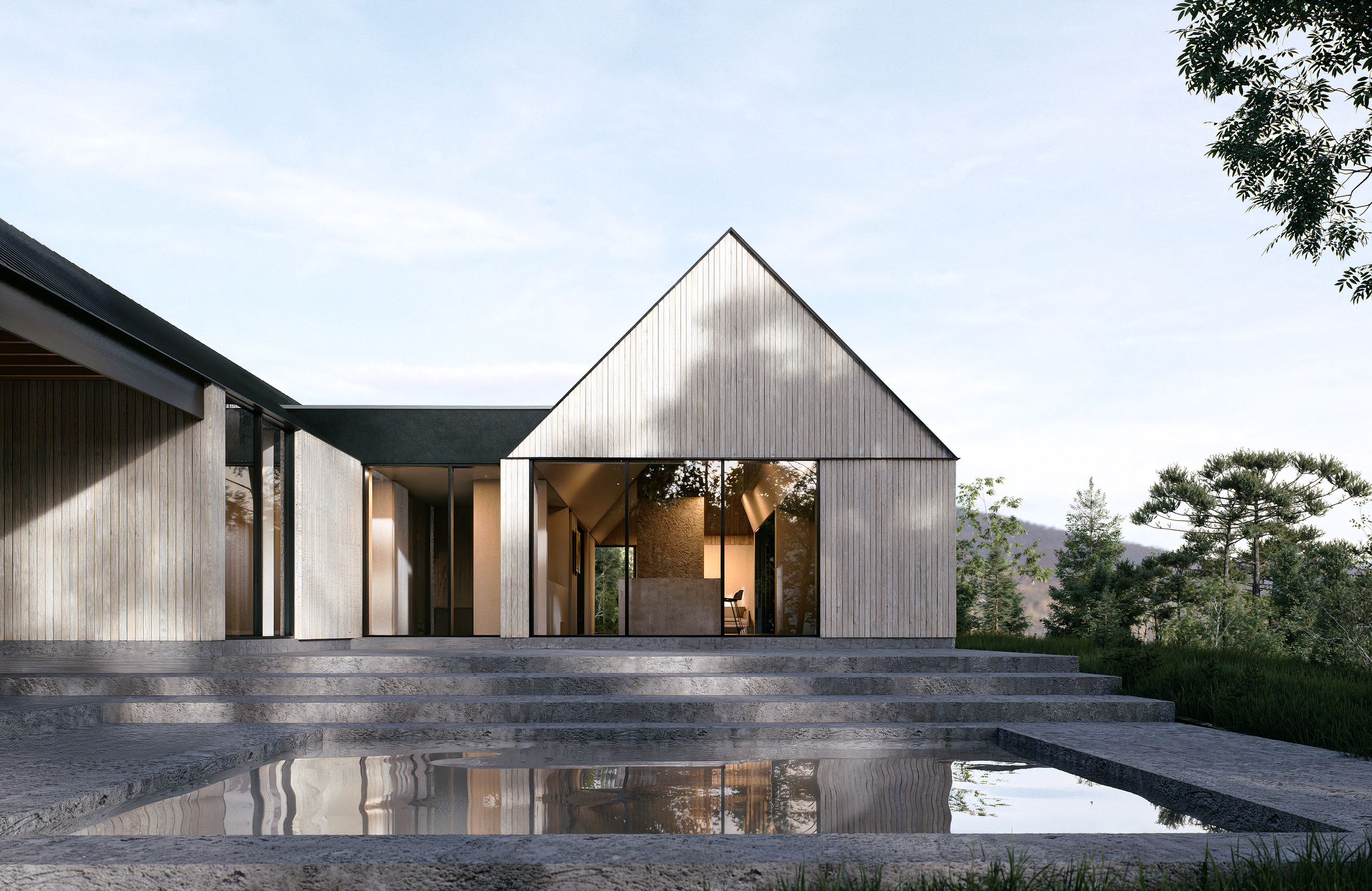 The home’s understated, barn-structure profile thoughtfully nods to the region’s traditional residential vernacular. This intentional modesty ensures the structure feels harmoniously scaled and contextually integrated within the natural landscape.