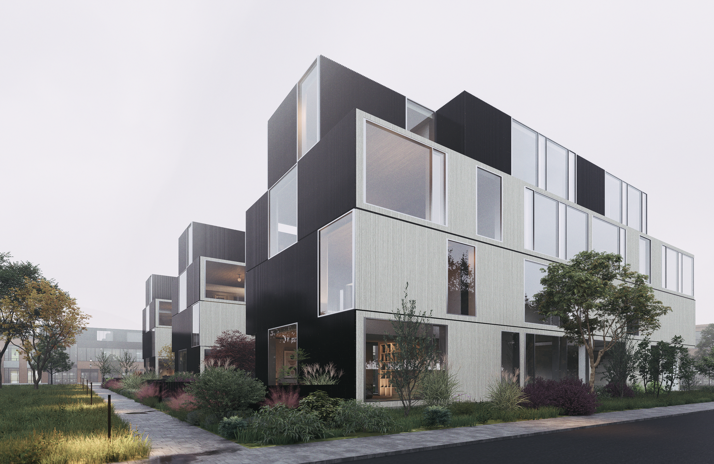 Toronto is missing a scale and quality of residential fabric that is common in other North American cities: three and four-story walk-up housing. Instead, given the City’s particular development history, central Toronto is mostly comprised of side-by-side attached duplexes or extreme high-rise condos. As a result, there are few in-place models for the appropriate-scaled infill residential development where residential streets meet the Avenues or more mixed-use districts. This walk-up prototype is meant to partly fill this void, not just as a one-off project, but also as a new scale of urban tissue - created through the aggregation of one or several of these typologies.